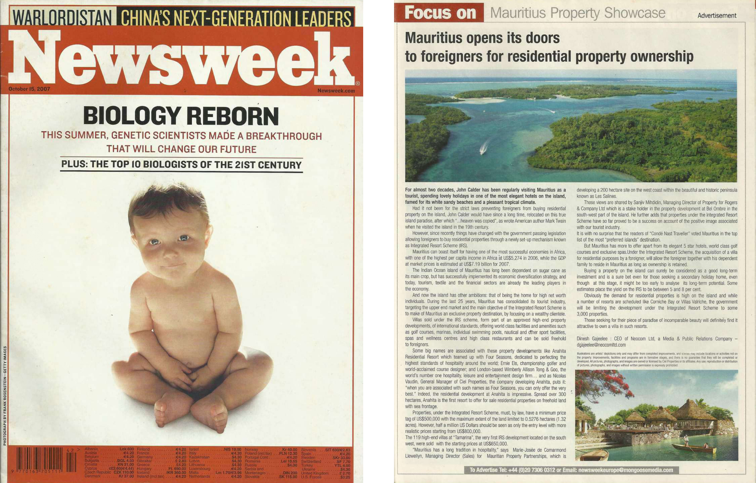 Focus on Mauritius Property Showcase in Newsweek by Neocom